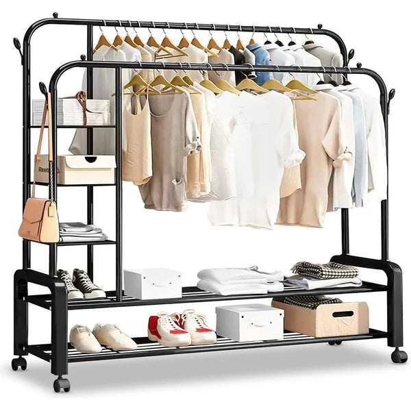 Nancy's Kledingrek - Staand 2 Laags Kledingrek, In Hoogte En Breedte Verstelbaar - Kleding Opbergrek Met Wielen - Verrijdbaar Kleding Rek Met 2 Stangen