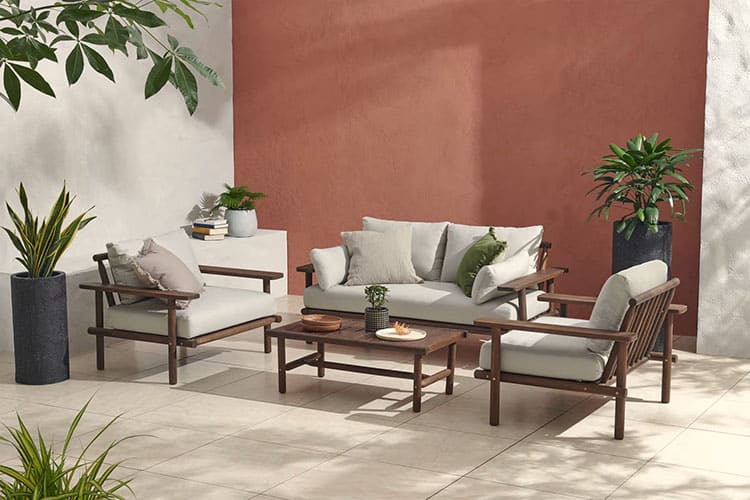 Bring out the atmosphere of your interior with our lounge sets in different styles. Whether you have a Scandinavian, glamorous or rural design, we have the perfect match for your outdoor space. Choose from materials such as concrete, wood or woven reed to seamlessly match your personal taste.