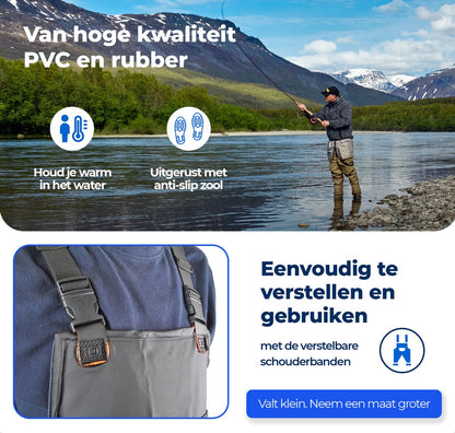 Les bottes de nos waders sont équipées de puissantes semelles antidérapantes. Cela signifie que vous restez ferme et stable même sur des surfaces glissantes, comme dans un fossé ou au bord d'une rivière. Vous pouvez vous déplacer en toute confiance, sachant que votre sécurité passe avant tout.